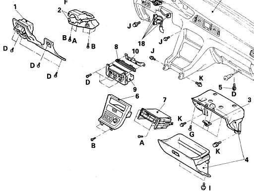Handschuhfachkasten: die unteren Schrauben (K) raus (10er) und oben die 4 Schrauben (G) zusammen mit dem Schlossbügel (3) raus (Kreuz) und Kasten abnehmen.